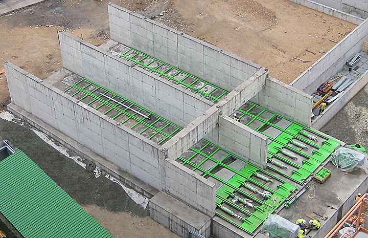The Discharge System PushFLOOR is designed for the discharge of poor-flowing bulk materials from silos, bunkers and comparable storage structures. It is particularly applied in installations with large storage cross-sections and demanding material characteristics.